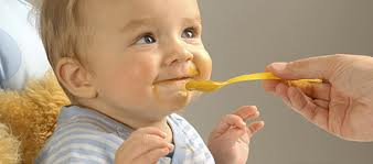 Vanaf 6 maanden kan je met je kind beginnen aan oefenhapjes. Er is dan vaste voeding nodig naast de borstvoeding of flesvoeding. Het eten gaat vaak niet vanzelf, je moet hiermee oefenen. Voor het kindje zijn het allemaal nieuwe smaken. Het kindje weet van te voren niet wat je hem/haar in zijn mondje gaat stoppen en wordt dus volledig verast door de smaak explosie in zijn mond. Met een hapje leer je je kindje happen van een lepel en oefent daarmee zijn mondspieren. Ook wend je kindje weer aan nieuwe smaken. Er zijn zoveel voedingsmiddelen, waar begin je nu eigenlijk mee? Het eerste hapje van je kindje is vaak een groentje- of een fruit hapje, of pap met een lepel. Wat kleine stukjes brood zonder korst, een beetje aardappel, rijst of bijvoorbeeld een lepeltje fijngemalen vlees of vis kan ook. Je begint het eigenlijk met de zoete smaak van voedingsmiddelen. Die zoete drang komt van onze sterke behoefte aan koolhydraten. (Zetmeel en suiker) en is ook belangrijk voor de groei die kinderen het eerste jaar doormaken. Er zijn verschillende soorten groente en fruit waar je het beste mee kan beginnen zoals; peer, banaan, meloen, en perzik. Appel kan je ook gebruiken als je dit even kookt of heel fijn raspt. Bij groente begin je met de zachte smaken van worteltjes, bloemkool, ontvelde tomaat, pompoen, courgette, boontjes, broccoli, sperziebonen, peultjes of komkommer. Gaar koken met een beetje water, zónder zout. Je hebt verse klaargemaakte voeding en je kan in de winkel potvoeding kopen. Een nadeel aan potjes is dat de smaken vaak gemengd zijn met elkaar. Zo wend je kindje minder goed aan de losse smaken op zijn bordje. Kinderen moeten echt wennen aan hun hapjes. Als je kindje nog niet helemaal gewend is aan zij hapje kan het kind het uitspugen. Dit is niet erg, je probeert het de volgende keer gewoon weer. Wanneer je kindje 12 maanden is mag je kindje mee gaan eten met het gezin. Dat houd in dat je kindje dam 3 maaltijden krijgt per dag en iets tussendoor. Nu komt de echte pret met eten.